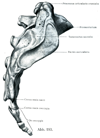 中間仙骨稜;関節仙骨稜【ちゅうかんせんこつりょう;かんせつせんこつりょう】 Remnants of articular processes located on both sides of the median sacral crest.(正中仙骨稜の両側にある中間仙骨稜は関節突起とこれに属する靱帯の骨化により生じる。)