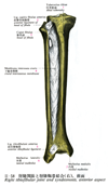 内果;脛骨踝【ないか;けいこつか】 (脛骨下端の内側部は内果と呼ばれ、生体で皮下によくふれられる。内果のすぐ後方に、これに接して浅い溝が弓状に走るが、これは長趾屈筋の腱が通るところである。)