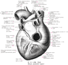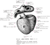 左心房【さしんぼう】 (左心房は心臓の後上部にあって、後面をつくっている。左心房は右心房よりもやや小さいが、壁はやや厚い。左心房の後壁の上部に、左右両肺からそれぞれ2本ずつ、前部で4本の肺静脈が開口している。左心房は前下方で房室口によって左心室に通じる。)