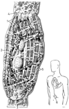 刺激伝導系;心臓刺激伝導系【しげきでんどうけい;しんぞうしげきでんどうけい】 It is located in the myocardium beneath the endocardium.(心臓を構成する心筋細胞には、自発的に興奮と収縮を一定の周期をもって繰り返す能力をもつ心筋細胞(特殊心筋細胞)と実際上これをもたないといえるもの(一般心筋細胞)が含まれており、特殊心筋細胞の禅宗断を刺激伝導系と称する。刺激伝導系のなかに通常四つの部分、すなわち洞房結節、房室結節、His束(房室束)、Purkinje線維、を区別する。これらのうち後3者は順につながった状態で心臓内に存在する。洞房結節は、上大静脈が右心房にそそぐ開口部付近に存在する特殊心筋細胞の集団である。ここの特殊心筋細胞が示す自発的興奮・収縮の周期は他のいずれの刺激伝導系部分をなす特殊心筋細胞のそれよりも短く(つまり最も頻繁に興奮・収縮を繰り返す)、心臓全体の拍動リズムを決定するペースメーカーとしての役割を洞房結節が担うこととなる。洞房結節は胎児期に存在していて、次第に右心房の壁の中に取り込めれてしまった静脈洞部分と右心房固有部分との境界にこの結節が出来てくることによる。房室結節と称されることもある。この結節をつくる特殊心筋細胞のリズムは洞房結節をつくる特殊心筋細胞のそれの約半分の速さであるが、残りの刺激伝導系部分のリズムより早いので、洞房結節が機能不全に陥った際には房室結節が二次的ペースメーカーとなり、心臓全体の拍動リズムを支配するようになる。房室束は房室結節からはじまり心室中隔の頂部にまでいたる部分であり、心室中隔の右側表面と左側表面に沿ってそれぞれ下行する右脚と左脚とに分かれる。)