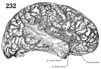Sylvian artery中大脳動脈【ちゅうだいのうどうみゃく】 Second terminal branch of the internal carotid artery. It passes laterally between the frontal and temporal lobes to the lateral cerebral fossa where it divides. It gives off cortical branches as well as arteries for subcortical and basal nuclear regions.(中大脳動脈は内頚動脈の続きであるが、前大脳動脈の分岐点を過ぎてからはじまる。この動脈は、前有孔質を越えて外側方向に走り、側頭葉と島の間にある大脳外側窩に入る。中大脳動脈は大脳動脈の中で最も大きく複雑であり、上方や後方に走る多数の大きな枝を分岐する。この多数の枝は、島の背側周縁に達すると外側溝に向かって方向を急に下方に変え彎曲して走る。Fischerらは(Fischer E: Lageabweichungen der vorderen Hirnarterie im Gefassbild. Zentralbl Neurochir 3: 300-312, 1938)中大脳動脈を放射線学的にM1(horizontal)、M2(insular)、M3(cortical)区域と分類した。中大脳動脈皮質枝はSylvius裂より脳表に出る際に強く屈曲し、この屈強部を横に結んだ線と中大脳動脈本幹の最も前方の点の間で三角形が形成される。この三角形は、放射線学的にSylvian traiangleといわれ、脳血管撮影の重要な所見のひとつである。微小外科解剖学的には各々M1(sphenoidal)、M2(insular)、M3(opercular)、M4(cortical segment or terminal segment)となっている。TAにおいてはM1(Pars sphenoidalis)、M2(Pars insularis)、M3(Rr. Terminales inferiores)、M4(Rr. Terminales superiores)となっているので注意する。)