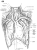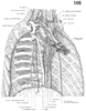 心膜横隔動脈【しんまくおうかくどうみゃく】 It accompanies the phrenic nerve and supplies the pericardium and diaphragm.(心膜横隔動脈は内胸動脈より起こり、心膜、横隔膜、胸膜に分布する。筋横隔動脈、下横隔動脈、内胸動脈の縦隔枝・心膜枝と吻合する。)