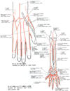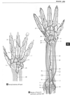 前骨間動脈;掌側骨間動脈【ぜんこつかんどうみゃく;しょうそくこつかんどうみゃく】 It runs on the interosseous membrane and beneath the pronator quadratus to the carpal and palmar dorsal arches. It supplies the deep flexors.(前骨間動脈は前腕骨間膜の前面に沿って下行し、同名神経を伴行する。周囲の筋に枝を与えた後、方形回内筋の近位で骨間膜を貫いてその背面に出て、ここで後骨間動脈と吻合したのち、背側手根動脈網へ向かう。)