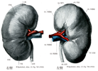 Burow's veins腎静脈【じんじょうみゃく】 Right and left veins from the kidney.(腎静脈は左右とも腎動脈の腹側にあり、腎門で数本の静脈が合流して腎門の中で形成される太い静脈で、第二腰椎の高さで下大静脈に直角にそそぐ。左は右よりも長く、大動脈の前を横切る。右側は通常、右腎のみより血液を集めるが、左の腎静脈には、左側から上位腰静脈、上行腰静脈、下横隔静脈と副腎静脈の共同幹、および精巣(♂)または卵巣(♀)静脈などがそそぐことが多い。)