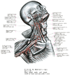 舌骨下リンパ節【ぜつこつかりんぱせつ】 Lymph nodes located in the midline below the body of hyoid bone. Afferent vessels drain the laryngeal vestibule, piriform recess, and adjacent hypopharynx. Drain into: deep cervical lymph nodes.