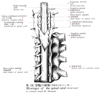 脊髄硬膜【せきずいこうまく】 Hard membrane forming a protective covering around the spinal cord. It is separated from the wall of the vertebral canal by the epidural space.(脊髄硬膜は内外の2枚の膜からなる。外板はやや薄く、脊柱管をおおう骨膜となる。内板は厚く、狭義の脊髄硬膜に相当し、脊髄を包む長い円筒形の嚢を作る。これは上方は大後頭孔縁に付き、下方は脊髄円錐を越えてさらに馬尾を包みつつ下り、第2~3仙椎の高さで急に尖って終わる。なおその続きは終糸の下半分と癒着して細い索となり、尾骨に付く(脊髄硬膜糸)。椎間孔では硬膜は骨と癒着している。内板と外板の間は脂肪に富んだ結合組織、静脈叢などで満たされ、これを硬膜上腔という。内板とクモ膜との間にも内皮細胞で覆われた狭いリンパ腔隙があり、これは硬膜下腔と呼ばれる。)