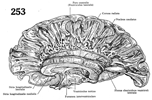 第三脳室【だい3のうしつ】 Diencephalic part of the cerebral ventricular system. It extends from the lamina terminalis to the cerebral aqueduct.(第三脳室は左右の間脳の間にある背腹方向にスリット状を示す腔である。前壁は終板と前交連によってつくられる。前上部には室間孔が開口し、左右の側脳室と交通し、後方は中脳水道と連絡する。後壁は松果体に入り込む松果体陥凹がみられ、下壁は視床下部によってつくられ、視交叉陥凹、漏斗陥凹がみられる。外側壁を形成している視床と視床下部の境には視床下溝が走る。なお、脳室の前上方部に第三脳室終脳部とよばれる部分がある。)