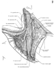 鎖骨上神経【さこつじょうしんけい】 Cutaneous branches from C3 and C4 that radiate in a fanlike manner into the shoulder and clavicular regions.(C3およびC4よりでる皮枝。扇状に方および鎖骨部へ広がる。 (Feneis))