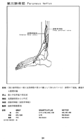 深腓骨神経【しんひこつしんけい】 Nerve passing deep to the peroneus longus and then lateral to the tibialis anterior to the dorsum of foot.((Netter)深腓骨神経は、長腓骨筋と長趾伸筋の間で腓骨頚前下方へ斜めに回り、下腿骨間膜の前方へ達する。この神経は前脛骨筋の外側を下行し、始めは長趾伸筋の内側に位置し、ついで長母趾伸筋の内側を通る。長母趾伸筋の腱は、足根の上方でこの神経の上を斜めに横切る。深腓骨神経は下行する経過において、始めは前脛骨動静脈の外方、ついでこれら血管の前方に位置し、最後には脛骨下端と足根の前面においてこれらの血管の外側に再び位置することとなる。ここでこの神経は、内側終末枝と外側終末枝の2小枝に分岐する。固いでは、深腓骨神経は前脛骨筋、長趾伸筋、長母趾伸筋および第3腓骨筋に筋枝を出し、足根に関節枝を送り、さらに前脛骨動静脈に小枝を出す。内側終末は1本の背側趾神経を派生し、この神経は二分して第1、2趾の隣接面を支配する。内側終末枝は足背動脈、近傍の中足指節関節と指節間関節にも枝を出し、時として第1腓側骨間筋に小枝を送る。外側終末枝は、短趾伸筋の下を外方に曲がり、やや広がって数本の細い枝を出し、短趾伸筋、その内側部(短母趾伸筋)、近傍の足根関節、足根中足関節、そして時として第2および第3の背側骨間筋を支配する。)