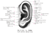 Darwin's tubercle耳介結節(ダーウィンの)【じかいけっせつ(だーうぃんの)】 Occasional elevation on the superior posterior aspect of the inner margin of the auricle.(動物に見られる耳の先端が内側に向かって屈曲遺残したものと考えられる。本書では記載していないが、耳介の後上縁反転部のわずかな軟骨性突出をさす。進化論で知られるCharles Robert Darwin (1809-1882)の名を冠する。)