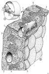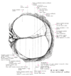 Reissner's canal蝸牛管【かぎゅうかん】 Endolymphatic duct that in humans has 2 1/2-2 3/4 turns and extends to the cochlear cupula. It is triangular in cross-section and contains sensory epithelium for sound perception.(蝸牛管は蝸牛の中にある。ラセン状に巻いている。管の上端と下端は行きづまりの盲端になっていて、それぞれ頂盲端および前庭盲端とよばれる。蝸牛を蝸牛軸を縦に通る面で切断すると、蝸牛ラセン管の断面がみられる。蝸牛ラセン管には上、中、下の3個の腔所がみられる。上方の腔所を前庭階、中央の腔所を蝸牛管、下方の腔所を鼓室階という。前庭階と鼓室階は外リンパ鞘である。両階は蝸牛上部の蝸牛孔で互いに交通している。蝸牛管に内・外・上および下壁の4壁がある。内壁は蝸牛軸から水平に出てる骨ラセン板をおおう骨膜の厚い肥厚部である。この肥厚部をラセン板縁という。ラセン板縁の外側胆は内方に向かってC字状に凹んでいる。この凹みを内ラセン溝という。1層の立方形の上皮細胞でおおわれる。C字の上端は前庭唇といい、下端を鼓室唇という。ラセン板縁の上面にできている多数の突起をHuschkeの聴歯という。突起(聴歯)間の凹みに細胞体主部を置く上皮細胞を歯間細胞という。聴歯は歯間細胞の細胞体上部から出る扁平な突起でおおわれている。この突起は蓋膜の内帯でおおわれる。蓋膜は、さらに前庭唇より外方に張り出していて、ラセン器をおおう。鼓室唇の外側端の基底板につづく部分に神経の通る小孔がある。この小孔を神経孔という。外壁の骨壁に接している部分をラセン靱帯という。骨膜の肥厚したものである。ラセン靱帯の上端にある小さな高まりを前庭稜、下端の高まりを基底稜という。基底稜のやや上方に血管に富む高まりがある。これをラセン隆起といい、中にある血管を隆起血管とおいう。基底稜とラセン隆起との間の凹みを外ラセン溝といい、1層の立体形の外ラセン溝細胞でおおわれる。ラセン靱帯の内側にあって、3層の細胞層からなる上皮層を血管条という。上皮内に多数の毛細血管をふくみ、内リンパを分泌するといわれている。3層の上皮細胞を、内層から辺縁細胞、中間細胞、および基底細胞という。上壁は薄い膜から成る。前庭膜(前庭階壁)またはReissner膜という。前庭階と蝸牛管とを境する膜で、ラセン板縁上面からおこり前庭稜に付着する。下壁は鼓室階壁といい、鼓室階と蝸牛管とを境している。鼓室階壁はラセン板外側部と、それにつづく基底稜に付着するラセン膜との2部分からなる。ラセン膜は3層構造である。上層は感覚上皮で、中層は基底板とよばれ、強靱な細糸束の層である。下層は結合組織層で間葉性の細胞が鼓室階に面している。鼓室階付層ともいう。基底板は2帯に分けられる。神経孔から外柱細胞体までの部分およびこれより外方の基底稜までの部分である。前者を弓状体、後者を櫛状帯という。基底板と鼓室階付層の間で、外柱細胞の位置する部分に、1本の血管がラセン状に走っている。この血管をラセン血管という。)