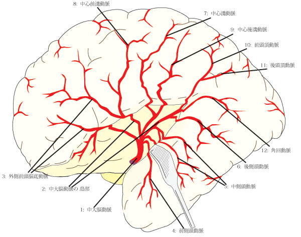 1: Middle cerebral artery 中大脳動脈 (Arteria cerebri media)