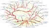 11: Precuneal branches of pericallosal artery 楔前部動脈;脳梁周囲動脈の楔前部枝 ( Rr. precuneales)