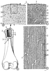 海綿質;海綿骨;小柱骨【かいめんしつ;かいめんしつ;しょうちゅうしつ】 Loosely organized bone substance with interstices filled with bone marrow.(骨の内部の大部分は細い骨梁からなる海綿質でできている。海綿質は、三次元的な有孔の網目格子に配列している骨で外力の影響を受けて、適切な数の骨梁が形成されており、骨の強度を生み出している。骨の内腔は「曲げ」に対する抵抗力にはあまり貢献していない。しかし内腔があるおかげで骨の重量は著しく軽減されており、われわれの骨格の重要は平均してわずか7kgに過ぎない。内腔の骨梁間の腔所(骨髄腔)は、骨髄がつまっている重要な場所である。)