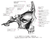 翼口蓋窩【よくこうがいか】 Continuation of the infratemporal fossa to medial between the maxillary tuberosity, the perpendicular plate of the palatine bone, and the pterygoid process. It narrows inferiorly to continue as the greater palatine canal.(翼口蓋窩は側頭下窩の内側にある縦に細長い窩で、翼状突起の外側板と上顎骨体との間にある裂隙。上方から下方へ行くにしたがって前後幅は狭くなる。内側は口蓋骨垂直板、上壁は蝶形骨体よりなり、外側は遊離面をなし、また下壁は上顎骨体、蝶形骨翼状突起、口蓋骨錐体突起により閉ざされている。この窩は内・外・前・後・上・下のすべての方向と交通しており、内方では蝶口蓋孔(上後鼻神経が通る)を通じて鼻腔と、外方では翼上顎裂を通じて側頭下窩と、前方では眼窩列を通じて眼窩と、後方では翼突管(翼突管神経が通る)を通じて外頭蓋底と、上方では正円孔(上顎神経)を通じて内頭蓋底と、下方では大口蓋管(大口蓋神経および下行口蓋動・静脈)を通じて口腔とそれぞれ交通している。)