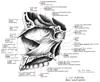 鼻棘(前頭骨の);前頭骨鼻棘【びきょく(ぜんとうこつの);ぜんとうこつびきょく】 Medially situated sharp process of the nasal part of the frontal bone.(鼻骨縁の中央から1本の長い鼻棘が下方に突出する。鼻棘の前方は鼻骨、両側は上顎骨前頭突起、後方は篩骨垂直板が連結するところである。)