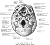 大後頭孔;大孔【だいこうとうこう;だいこう】 Large opening in the occipital bone for the medulla oblongata. vessels, and nerves.(大後頭孔(大孔)は大きさや形に変化があるが、一般に前後に長い卵円形である。大後頭孔は頭蓋腔と脊柱管とを結ぶ孔で、したがって脳の脊髄につづく部である延髄下部が副神経脊髄根、椎骨動脈、静脈叢などとともにこれを通る。)