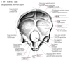 内後頭稜【ないこうとうりょう】 Inconstant thickened bony ridge that extends from the internal occipital protuberance to the foramen magnum.(十字隆起のうち、内後頭隆起から下に向かい大後頭孔の後縁に達する高まりを内後頭稜と呼ぶ。下矢状静脈洞を容れる溝になる場合がある。)
