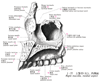 涙嚢溝(上顎骨の)【るいのうこう(じょうがくこつの)】 Depression for the nasolacrimal canal.(上顎洞裂孔の前には前頭突起からつづく涙嚢溝が縦に走る。裂孔前縁の上半部からは小さな骨片(涙半月)が出て、涙嚢溝の後壁を後壁を高くする。)