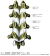 椎弓根【ついきゅうこん】 The part of the vertebral arch located on the vertebral body between the superior and inferior vertebral notches.(椎弓根は椎体に付く椎弓の前部。上縁と下縁にある上椎切痕と下椎切痕により、上下から狭められる。多くの椎骨では椎弓板は椎弓根より深く、したがって椎弓根は椎体後面の上端寄りに着くようにみえる。)