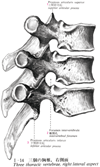 椎間孔【ついかんこう】 Opening between two adjacent vertebrae for the passage of a spinal nerve and small vessels. It is bounded by two adjacent vertebral notches (above and below), the vertebral bodies, and the intervertebral disc.(椎骨をその順位にしたがって連結すると、上の椎骨の下椎切痕と舌の椎骨の上椎切痕は互いに向き合って椎間孔を作る。椎間孔は脊柱管の中にある脊髄から出る脊髄神経の通路となる。椎弓根と椎弓板の移行部が合する椎弓の後端から1本の棘突起が出る。)