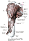 肩甲棘【けんこうきょく】 Rather long bony ridge on the posterior surface of the scapula that is continuous with the acromion.(肩甲棘そのものは、尖端が扁平な大突起となって関節窩を越えて突き出ている。この部分を特に肩峰(肩甲棘から肩峰にかけて僧帽筋がつき、三角筋が起こる)と呼ばれ、その突起近くの内側面には鎖骨と連結する小楕円形の関節面(輪郭はあまり明瞭でない)がある。)