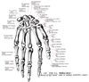 頭[指節骨](手の)【とう[しせつこつ](ての)】 Distal head of a finger bone.(手の指節骨の頭は基節骨と中節骨では縦の溝をもった滑車状で、関節面を帯びる。)