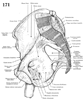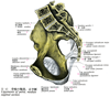 坐骨棘【ざこつきょく】 Bony process between the greater and lesser sciatic notches.(坐骨体の後縁の上部に、後内方に突出する三角形の坐骨棘がある。)