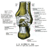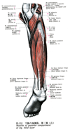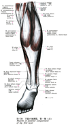 内果;脛骨踝【ないか;けいこつか】 (脛骨下端の内側部は内果と呼ばれ、生体で皮下によくふれられる。内果のすぐ後方に、これに接して浅い溝が弓状に走るが、これは長趾屈筋の腱が通るところである。)