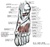 舟状骨粗面【しゅうじょうこつそめん】 The medial margin of the navicular that gives attachment to the posterior tibialis muscle. It is palpable through the skin.(足の舟状骨の内側部は舟状骨粗面として内方に向かって突隆し、体表から離れる。下面で舟状骨粗面に近く、後脛骨筋の深在の腱を容れる浅い溝が斜めに走る。舟状骨粗面に下方に着く後脛骨筋の一部の腱のなかに種子骨、外頚骨を含むことがある。)