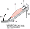 停止;可動端【ていし;かどうたん】 Part of the skeleton being moved.(筋に付着する筋の両端のうちで、運動時に大きく動く端を停止という。しかし、実際には、運動による移動は相対的で、動く程度によって起始と停止を区別できないことも多い。したがって、一般に体肢の筋では体幹に遠いほうの端、すなわち遠位端を停止としている。また、体幹の筋で背腹方向に走る筋では脊柱に遠い方の端を停止とし、頭尾方向に走る筋では、骨盤に遠い方の端を停止としている。)