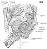 口輪筋【こうりんきん】 Bundles of muscle fibers that surround the oral fissure from both sides. It is the principal muscle of the lips, consisting of two parts. I: Facial nerve.(口輪筋の線維は部分的には、口角の外側粘膜にほとんど垂直方向に固定されている結合組織帯から起始し、一部は、口角へ向かって収斂し、かつその部で“筋結節”(硬結塊)を形成する隣接顔面筋(特に頬筋)の線維束から、細かい介在腱を介して起始する。上および下唇の中央部においては筋線維はかみ合って、一部は正中面を乗り越えて広がり、縦方向線維のマットを形成する。表層束は皮膚へ入る。参考:Origo nasalisは鼻中隔部の皮膚から起こり、これも鼻中隔下制筋とよばれることがある。上に述べた同名筋より浅い層にある。)