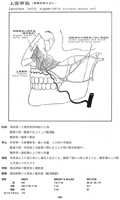 上唇鼻翼挙筋;眼角筋【じょうしんびよくきょきん;がんかくきん】 Muscle that originates from the frontal process of the maxilla and inserts into the upper lip and ala of the nose. I: Facial nerve.(上唇鼻翼挙筋は上顎骨前頭突起から愧死して、前述の筋と癒合して停止する。参考:"alaeque nasi"は"et alae nasi"と大体同じ意味。この2筋も、一般に単一筋板を作り、分離しがたい。さらに、小頬骨筋も合わせて3筋を上唇方形筋M. quadratus labii superiorisということがある。)