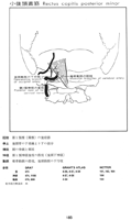 小後頭直筋【しょうこうとうちょくきん】 o:Posterior tubercle of the posterior arch of atlas, i: Medial one-third of inferior nuchal line. Mainly posterior flexion of the head. I: Suboccipital nerve.(小後頭直筋の短筋(もっとも上方に位置する後ろ横突間筋)は環椎後隆起で起始し、下項線の下で大後頭直筋の内側に停止する。)