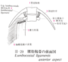 前葉;深葉;腰方形筋筋膜(胸腰筋膜の)【ぜんよう;しんよう;ようほうけいきんきんまく(きょうようきんまくの)】 Anterior layer of fascia that encloses the quadratus lumborum. It is attached laterally behind the psoas major to the anterior surface of the costal processes of the lumbar vertebrae.