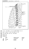 肋骨挙筋【ろっこつきょきん】 Support rotation of the vertebral column. These muscles are located posteriorly, deep to the long back muscles. o:Transverse processes of thoracic vertebrae, i: Ribs. I: Posterior ramus of spinal nerve.(肋骨挙筋の起始は12対あって第7頚椎および上位11個の胸椎の横突起から起こる。停止は起始である椎骨の下の肋骨の外面で結節と角の間。機能として脊柱の回旋と側屈、肋骨の挙上。吸気の補助。神経支配は胸神経の前枝。動脈は肋間動脈背枝から受ける。肋骨挙筋は、外肋間筋からの材料を含み、肋間神経からの補助神経支配をさまざまな点で受けることが明らかにされている。長い間、これらの筋は外肋間筋の派生物と考えられていた。短肋骨挙筋は横突起から直下の下位の肋骨へ長肋骨挙筋は中間胸部にないがさらに1つ下の肋骨へ急傾斜して走る。)