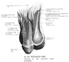 陰茎提靱帯【いんけいていじんたい】 Fascial and aponeurotic portion of the superficial investing fascia that attaches the body of the penis to the pubic symphysis.(浅腹筋膜の正中下端部が靱帯化したもので、陰茎(陰核)ワナ靱帯の深部にあり、恥骨結合前面からおこり、陰茎(陰核)海綿体の基部背面につく。女性では著しく弱い。)