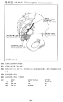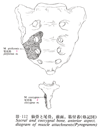 坐骨尾骨筋;尾骨筋【ざこつびこつきん;びこつきん】 Muscle fibers that fan out from the ischial spine to the lateral surfaces of the sacrum and coccyx. They are joined with the sacrospinal ligament.(仙骨下端と尾骨を結ぶ筋で、ヒトでは退化的に(坐骨)棘尾骨筋に相当し、その浅(外)部が仙棘靱帯になり、深(内)部が尾骨筋に変化し、肛門挙筋とともに尾骨隔膜を形成する。前後の仙尾筋は、それぞれ腹側と背側の尾筋に相当する。後仙尾筋は固有背筋の最下部である。)