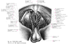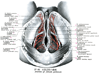 外肛門括約筋【がいこうもんかつやくきん】 Transversely striated outer sphincter muscle of the anus. It consists of the following three parts. I: Pudendal nerve.(外肛門括約筋は肛門挙筋の表層にあり、肛門を囲む横紋筋。内肛門括約筋の衿のように張り付いている。外口門括約筋のほぼ矢状面に位置する筋束が腸間終端を両側から閉鎖する。この筋束は後方では尾骨から張る靱帯(肛門尾骨靱帯)に付着し、前方では会陰中心に付いている。)