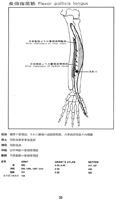 長母指屈筋(手の)【ちょうぼしくっきん】 o: Anterior surface of the radius, distal to the radial tuberosity. i: Base of distal phalanx of thumb. Flexes hand and phalanges of thumb. Radial abduction. I: Median nerve.(長母指屈筋は系統発生学的には独立した深指屈筋の一部である。その起始部は橈骨粗面から方形回内筋の上縁までの橈骨の前面、および骨間膜にまで広がっている。その腱は手根間を通り、短母指屈筋の2頭の間に入り込み、母指の末節骨底に付く。)