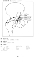 上双子筋;棘双子筋【じょうそうしきん;きょくそうしきん】 o: Ischial spine, i: Tendon of obturator internus muscle and trochanteric fossa. Lateral rotation, adduction, abduction. I: Sacral plexus.(この小さな上双子筋は坐骨棘より起こり内閉鎖筋腱に停止する。仙骨神経叢からの、内閉鎖筋へ直接枝による神経支配を受け、大腿骨外旋作用を示す。)