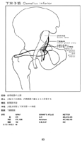 下双子筋;結節双子筋【かそうしきん;けっせつそうしきん】 o: Ischial tuberosity. i: Tendon of obturator internus, trochanteric fossa. Lateral rotation, adduction, abduction. I: Sacral plexus.(この小さな下双子筋は、坐骨結節上縁により起こり内閉鎖筋腱に停止しする。仙骨神経叢からの大腿方形筋への直接枝による神経支配を受け、大腿骨を外旋させる作用を示す。)