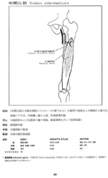 中間広筋【ちゅうかんこうきん】 o: Anterior surface of femur.(中間広筋は大腿骨前面および外側面から起こり、共通腱に停止する。その起始野は転子間線から大腿骨骨幹1/2から遠位2/3にまで達する。内側でも外側でも、中間広筋は内側広筋と外側広筋によっておおわれる。大腿直筋は中間広筋前面をおおう腱膜様腱の上を滑走する。中間広筋のもっとも遠位に起始する線維は膝関節包へ膝関節筋として停止する。この筋は膝関節伸展の際に関節包が挟み込まれるのを防ぐ。)