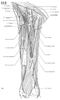 Hunter's canal内転筋管【ないてんきんかん】 Passageway that is formed by the adductor magnus, vastus medialis, and anteromedial intermuscular septum. It ends at the adductor hiatus.(ハンター管および縫工筋下管ともよばれる。大腿のほぼ中央の高さにある筋膜性の管で、上方は大腿三角の先端よりつづき、下方は内転筋腱裂孔に開く。外側壁は内側広筋、内側壁は大内転筋と長内転筋によってつくられ、また前壁は、縫工筋の深層をおおう厚い筋膜(広筋内転筋板(INA))が、内側広筋と大内転筋および長内転筋の間に張ることによってつくられる。このなかを大腿動静脈と伏在神経が走る。内転筋管の入口より上の方でも、既に大腿動静脈は長内転筋・縫工筋・内側広筋で囲まれたトンネルを通っている。そしてこのトンネル(筋性内転筋管muscular adductor canalともいう)を上方に場所が、大腿三角の底を作っている腸恥窩である。Williamの弟、John Hunter (1728-1793)によって記載された。精巣下降に関わる精巣導帯にも名を残す。かれの業績はロンドンのRoyal College of SurgeonsのHunter Museumにおいて見ることができる。)