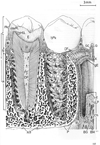 口腔前庭【こうくうぜんてい】 Space between the dental arcades and the lips or cheeks.(口唇(上唇と下唇)と歯列弓で囲まれた場所が口腔前庭であり歯列弓より内方の部分が固有口腔で、後は口峡を経て咽頭に続く。)