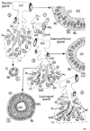 小唾液腺【しょうだえきせん】(小唾液腺は口腔粘膜下にある米粒ないし小豆大の小腺で、その部位によって口唇腺・頬腺・口蓋腺・舌腺などがある。)