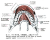 オトガイ舌筋【おとがいぜつきん】 o: Mental spine of mandible, i: Fanlike insertion on the lingual aponeurosis from the tip of tongue to the posterior part of tongue. It draws the tongue anteriorly, i.e., toward the chin. I: Hypoglossal nerve.(オトガイ舌筋は、下顎骨のオトガイ棘におけるその起始から舌の筋体の中へ扇状に広がり、舌筋膜に付着する。オトガイ舌筋はオトガイ舌骨筋の上に存在し、対側の同名筋から舌中隔によって内側で隔てられる。オトガイ舌筋は舌骨舌筋によって外側から被われる。)