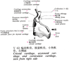 Santorini's cartilage小角軟骨;サントリニ軟骨【しょうかくなんこつ;さんとりになんこつ】 Small elastic cartilage on the apex of arytenoid cartilage that produces the corniculate tubercle.(小角軟骨は披裂軟骨尖の上にある円錐状の小弾性軟骨。小角結節をつくる。)