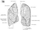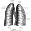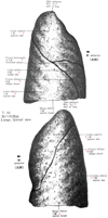 下葉(肺の)【かよう(はいの)】 It mainly extends dorsally. Its superior border runs obliquely from posterosuperior to anteroinferior. It begins paravertebrally at the fourth rib and ends at the intersection of the middavicular line and the sixth rib.(後側に主な拡がりをもつ。その上限界上後方から下前方へ斜めに走り、第四肋骨から脊柱側方で鎖骨中間線を第六肋骨が切る線までいたる。 (Feneis))