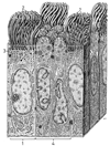 Fallopian tube卵管【らんかん】 About 10 cm long tube connecting the region around the ovary with the uterus.(ファロピウス管とも呼ばれる。卵巣から排卵された卵子を子宮に運ぶ管で、受精は卵管とくに膨大部で起こる。卵子が受精していれば子宮に子宮腔に達して着床する。漏斗部、膨大部、峡部、子宮部からなる。ガレノスらも記載しているが、ファロピウスの報告で知られたので彼の名が残った。なお、同じファロピウスの名を冠する顔面神経管は、日本では混乱をさけてファロッピオ管と呼ぶことが多い。卵管は卵巣と子宮とを結び、卵を子宮へ送る。卵巣側の端は卵管腹腔口で腹腔に開き、子宮側の端は卵管子宮口で子宮内膜へ開く。卵巣側2/3の部分はやや太く、卵管膨大部をなし、その卵巣右端はとくに拡がって卵巣漏斗をつくる。漏斗の縁からは房状の卵管采が放射状にひろがり、そのうちの一つ、卵管采は卵巣外側端へ達する。卵管の子宮側は1/3はやや細く、卵管峡部といい、その先で子宮壁内を通る部分を子宮部という。卵管内面には粘膜のヒダである卵管がよく発達して、複雑な形を示す。上皮は単層円柱で、繊毛細胞と分泌細胞が混在する。筋層は内輪外縦、その外側は漿膜におおわれる。イタリアの解剖学者Gabriele Fallopio [Fallopius] (1523-1563)の名を冠する。)